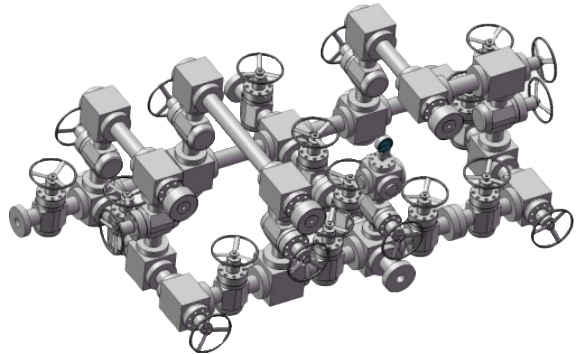 Choke manifold is a necessary equipment to control well-kick and implement oil&gas well pressure control technology. Its main structure includes choke valve, gate valve, manifold, flange nipple, pressure gauge and other parts. The parts are sealed by flange metal gasket to meet the production and operation requirements of various media. Safe drilling is realized by the control of choke valve, and the control of gate valve can realize the opening and closing of flow channel, reduce the safety risk and labor intensity of operators,choke manifold is simple to be operated and has good sealing performance.